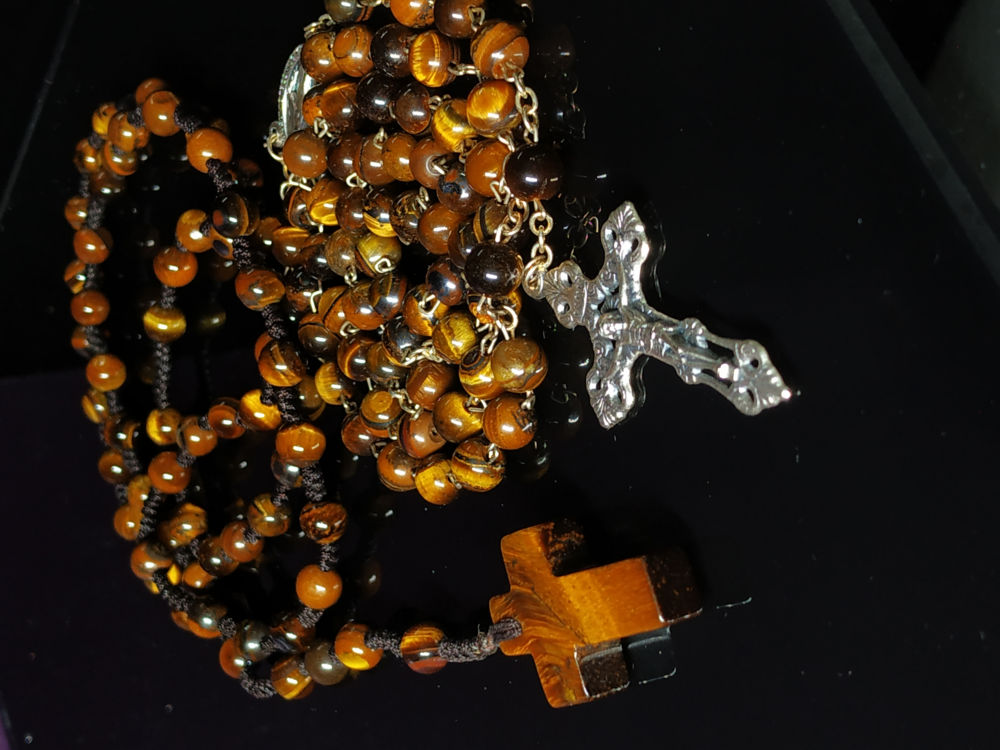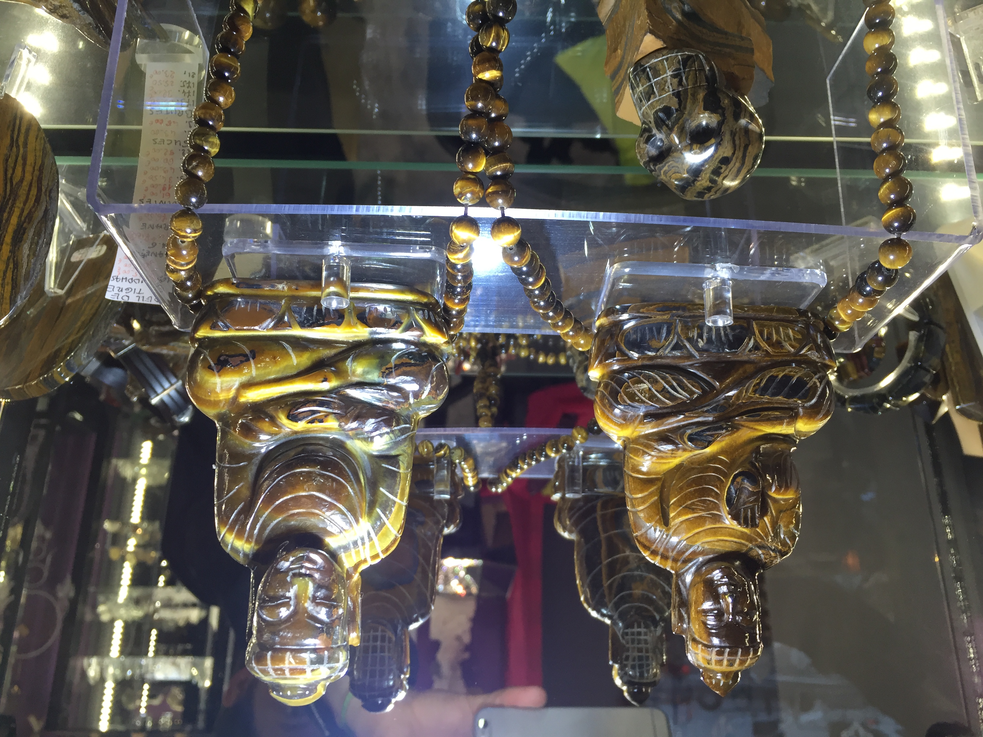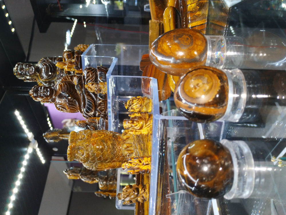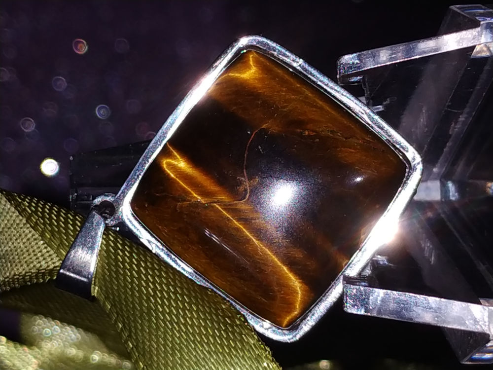 Oeil de tigre bracelet symboles gravées et tête de dragon feuille d'or