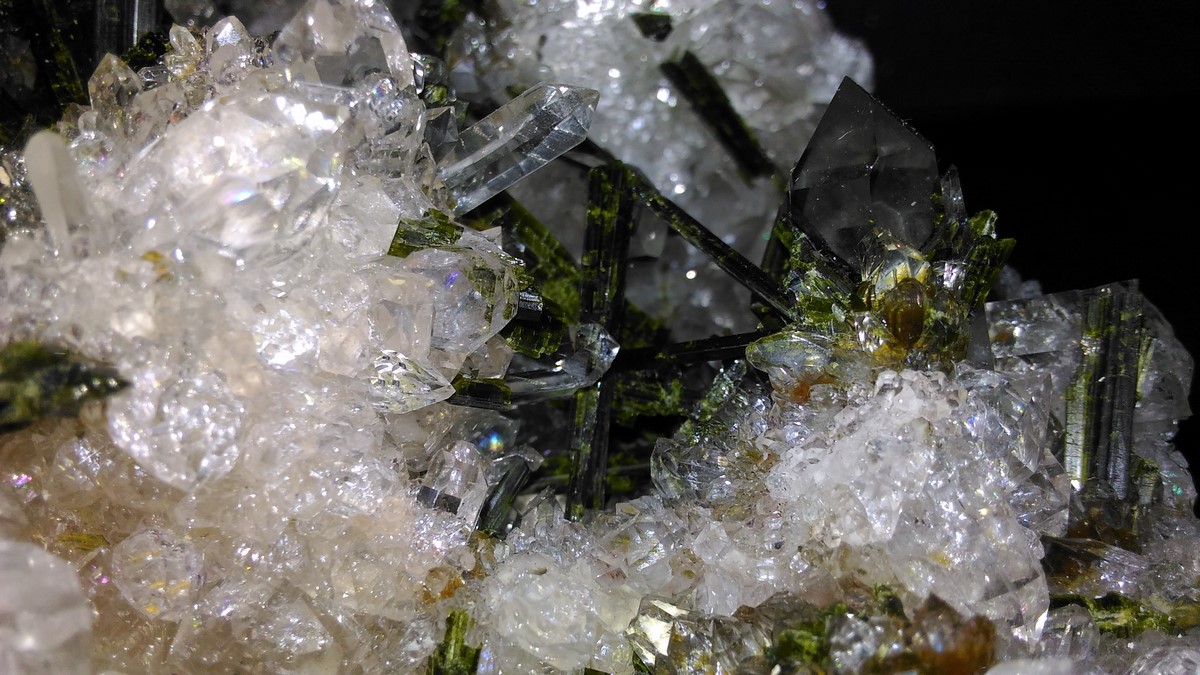 Druse quartz blanc inclusions épidote