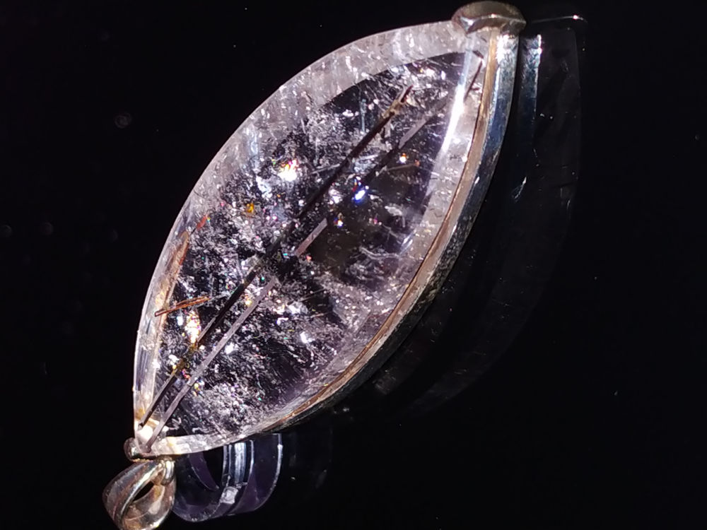 Quartz blanc inclusions tourmaline noire pendentif serti argent 9.125