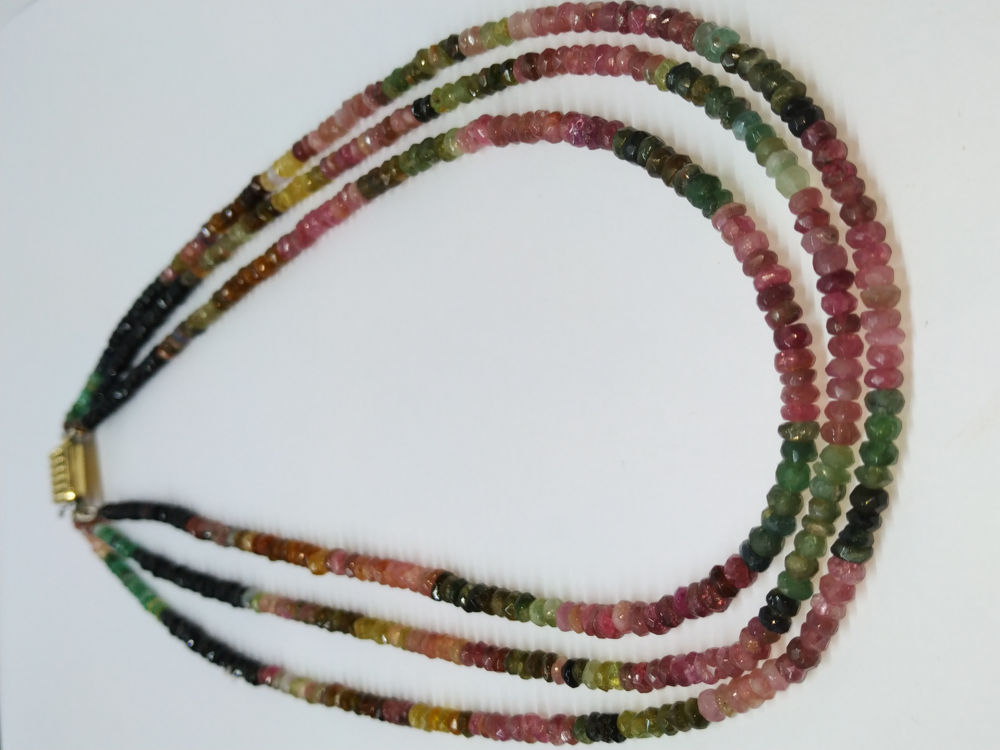 Tourmaline melon eau collier triple rangs