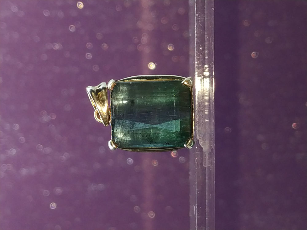 Tourmaline oeil de chat bleu pendentif serti argent 9.125